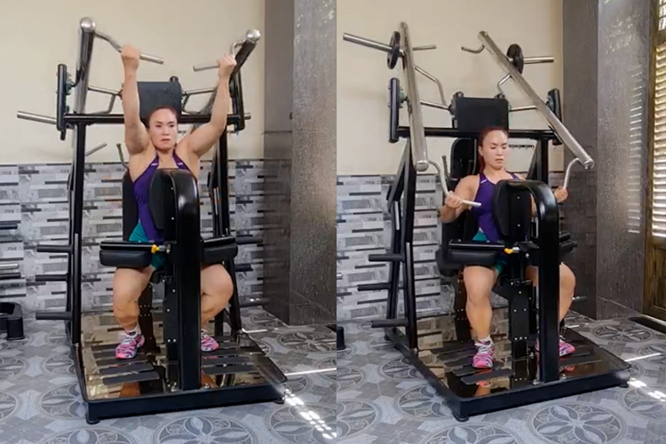 Bài tập đẩy ngực: Tác động vào nhóm cơ ngực, vai và tay sau nhưng chính là vào cơ ngực. Khi sử dụng bài tập này, người tập ngồi thẳng lưng, đẩy hai tay về phía trước một cách có kiểm soát để kích hoạt các nhóm cơ trên thân trên.