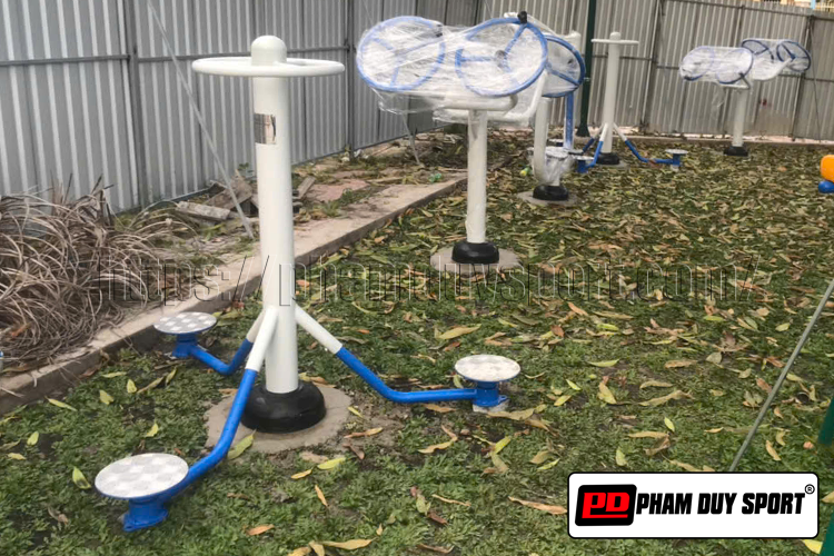 Cách lập luyện Xoay eo - PD 540 ngoài trời: Người tập chỉ cần đứng vững trên bàn xoay có áp nhom gân chống trơn trượt, tay bám chặt vào vòng trền phía trên giữ yên, Dùng éo xoay phần thân dưới qua trái – rồi qua phải nhịp nhàng, phần thân trên giữ cố định. Mỗi lượt tập khoảng 10-15 lần xoay và thường 3-4 hiệp, tập đều đặn hàng ngày sẽ giúp giảm mỡ bụng, săn chắc vòng eo, tăng cường sự linh hoạt cho cột sống và hỗ trợ điều chỉnh tư thế. Vùng eo đẹp tao vẽ đẹp trước mọi ánh nhìn.