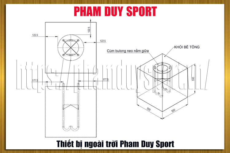 - Lắp đặt: Gắn cố định xuống nền.